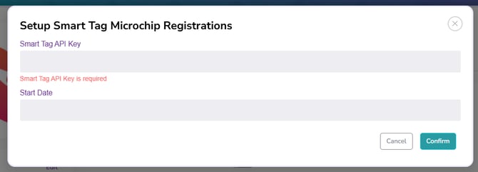 Enter your SmartTag API Key and the date you want to start registering your microchips: